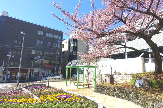 熱海市内中心部を流れる糸川沿い300メートル程の遊歩道には58本のあたみ桜が植栽されていて、見頃の時期に合わせて「あたみ桜糸川桜まつり」も開催され、多くの人たちで賑わいます。