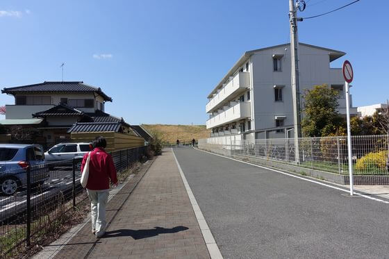 県道283号線のところまで来たら、信号を渡って左に曲がります。