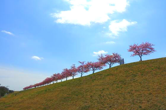江戸川沿いの市川南4丁目地先に約100本の河津桜が植えられていて、一足早い春を楽しむことができます。